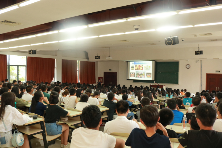 庄英萍从生活常见的发酵制品引入主题,以酱油和酒品的酿造为例,介绍了生物技术的最初起步源于人们对于发酵食品的研究,并逐一展开诉说了食品科学与生物技术的学科发展史。在带领学生回顾往昔后,庄英萍解读了食品和生物专业的现状,强调生物制造产业是我国重大战略需求的组成部分,重点介绍了生物制造领域的先进技术和知名科学家,并对生物反应器工程国家重点实验室“道器合一”的研究方向和成果进行了讲解。讲座尾声,庄英萍为新生送上了祝福,期待新一批生工学子在今后的校园生活中收获真知、锻炼能力、培育专业特长,将生工文化与华理精神传承与发扬。