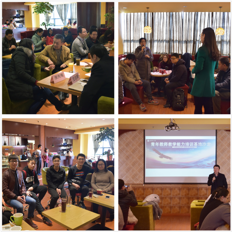 2017年12月22日,由教务处、人事处主办,生物制药类青年教师教学能力培训基地承办的青年教师教学能力培训基地沙龙(第七期)在奉贤校区大学生活动中心咖啡屋举行,来自学校九大培训基地的青年教师参加活动。本次沙龙由生工学院青年教师高蓓主持,教务处副处长张先梅、生工学院教学副院长王启要、生物制药类培训基地负责人张惠展、以及特邀嘉宾理学院赵丽霞、化学学院田振芬和外国语学院张杰参加活动,除此,活动还邀请了部分学生代表现场观摩。