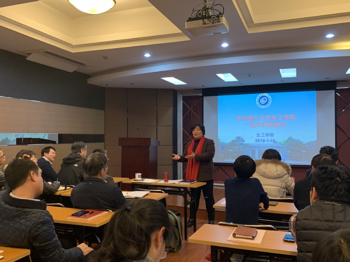 王启要首先向大家介绍了全国教育形势和召开一流本科建设推进会的背景。学校在2018年12月19日召开华东理工大学一流本科教育建设会,全面梳理和总结了2018年的教学工作状态。为了推进学校“双一流”建设,学院积极总结和梳理2018年的工作成绩与问题,并重点对本科教学工作中出现的问题进行分析,提出解决办法和应对措施。