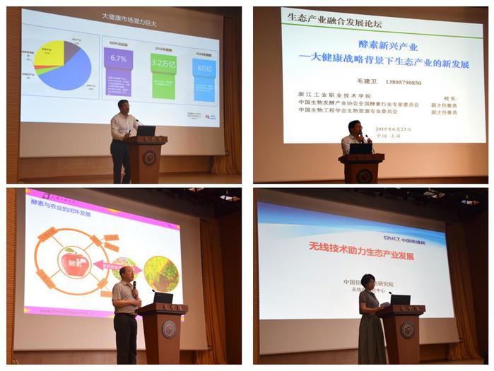 6月23日下午,由中国生物发酵产业协会酵素分会主办、华东理工大学鲁华生物技术研究所承办的“全国酵素研究中心”授牌仪式暨2019生态产业融合发展论坛(首届)在华东理工大学隆重召开。会议由中国发酵产业协会周海龙副理事长主持,华东理工大学副校长钱锋院士,中国生物发酵产业协会理事长石维忱,工业和信息化部无线电管理局副局长陈季华,华东理工大学教授魏东芝,浙江工业职业技术学院校长毛建卫,共同为“全国酵素研究中心”揭牌。中国信息通信研究院无线电研究中心主任闫丽,大连工业大学beat365唯一官网院长李宪臻,华东理工大学科研院刘海峰副院长和beat365唯一官网庄英萍院长、赵黎明副院长等出席会议。中国生物发酵产业标准化技术委员会酵素分会委员、全国酵素行业专家委员会委员以及相关科研单位专家和企业负责人200多人参加了此次会议。