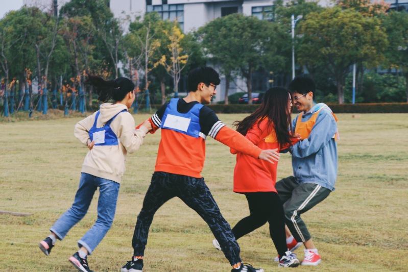 本次趣味运动形式多样,由热身游戏与彩虹跑两个环节组成,以同学们喜闻乐见的方式开展。热身游戏为食物链撕名牌,所有参赛者斗智斗勇,在想方设法撕下一名同学名牌的同时,还要防备上一位同学的“袭击”,场面可谓十分火爆。彩虹跑则分为四关:丢沙包、默契双人跑、料事如神-不听指令做动作和袋鼠跳接力。参赛选手在闯关的同时,还要提防来自其他队伍成员和工作人员的“彩蛋袭击”,稍不注意就会成为“变色龙”,整个游戏过程可谓精彩纷呈。同学们纷纷表示十分享受运动的乐趣,既放松身心,也增进了同学间的感情,展现了自己的风采。