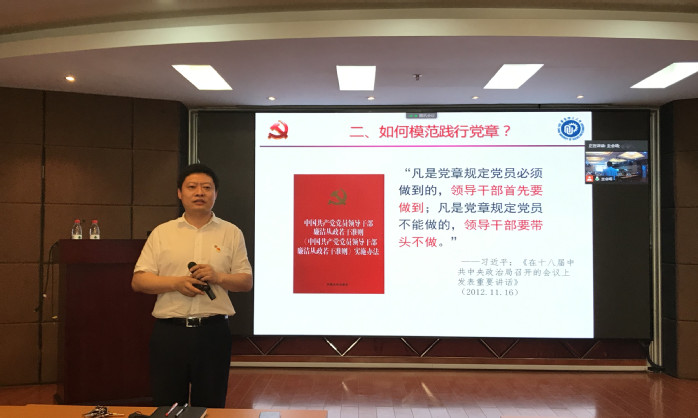 6月8日下午,beat365唯一官网2020届毕业生党员“初心如磐 使命在肩”主题教育在实验十八楼315会议室举行,学院党委书记赵黎明为2020届毕业生党员讲授题为“自觉尊崇党章 模范践行党章 忠诚捍卫党章——从党的历史谈践行和捍卫党章”的专题党课,并对毕业生党员提出明确要求和殷切希望。学院党委副书记左鹏主持大会。会议以线上和线下结合的方式进行,120余名毕业生党员及学院专职组织员高金玲参加了大会。