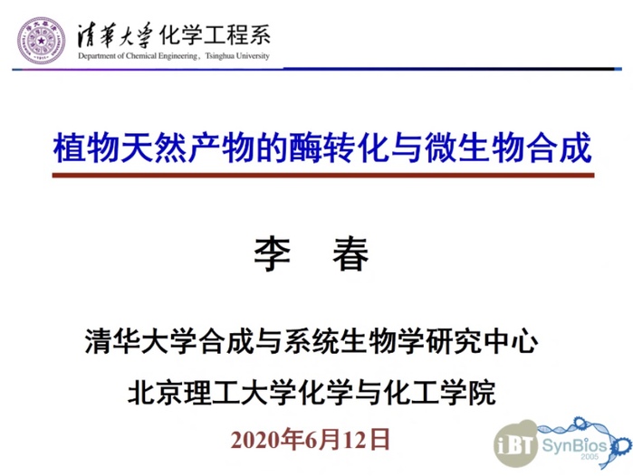 2020年6月12日上午九点半,研究生名师讲坛第一场主题讲座在研究生名师讲坛第一场主题讲座在“腾讯会议”线上平台如期举行。国家杰出青年科学基金获得者、清华大学李春教授受邀为全体与会师生做了有关“植物天然产物的酶转化和微生物合成”的主题报告,讲述甘草生物合成的“中国故事”。我院主管研究生工作的副院长郁惠蕾教授致辞,热烈欢迎李教授百忙之中为我院师生做专题报告。讲座由院研究生会蔡书善同学主持,全体师生近三百人在线聆听,并积极参与线上讨论。