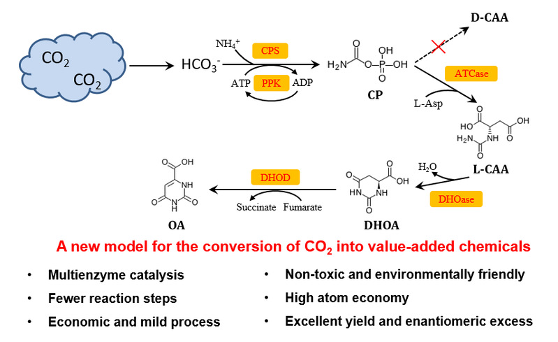 近日,beat365生物反应器工程国家重点实验室李志敏教授课题组应用多酶组合催化体系,在无细胞生物合成方向取得最新进展。有关成果分别在Green Chemistry以“Towards the conversion of CO2 into optically pure n-carbamoyl-l-aspartate and orotate by an in vitro multienzyme cascade” (https:// doi.org/10.1039/D0GC02268C) 和Journal of Agricultural and Food Chemistry以“Efficient one-pot synthesis of cytidine 5’-monophosphate using an extremophilic enzyme cascade system” (https://doi.org/10.1021/acs.jafc.0c04055)为题进行了报道。