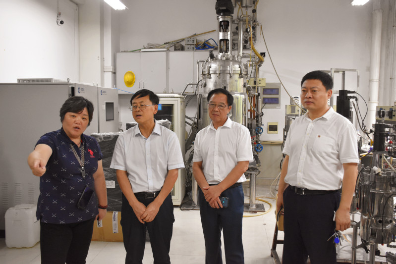 8月26日下午,新当选的中国生物发酵产业协会第三届理事会理事长于学军、副理事长马振华莅临beat365唯一官网指导。学院党委书记赵黎明教授、院长庄英萍教授陪同于学军理事长一行参观了生物反应器工程国家重点实验室,庄英萍院长向来宾介绍了beat365唯一官网的历史、学科特色、专业专局、科研情况等,特别介绍了学院基于国家重点实验室和国家生化工程中心两个国家级科研基地及省部级科研基地对接中国生物发酵行业需要所做的工作。