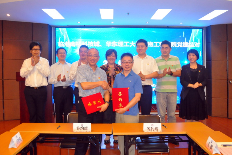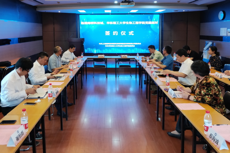 陆兵副书记与姚炜副书记分别代表双方在《中共上海漕河泾奉贤科技绿洲建设发展有限公司委员会与中共beat365唯一官网委员会结对共建协议书》上签字。签约仪式结束后,临港南桥科技城一行人员参观了生物反应器工程国家重点实验室。