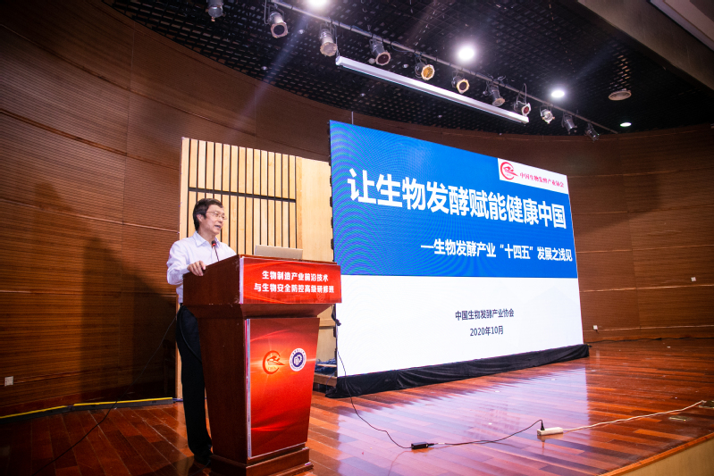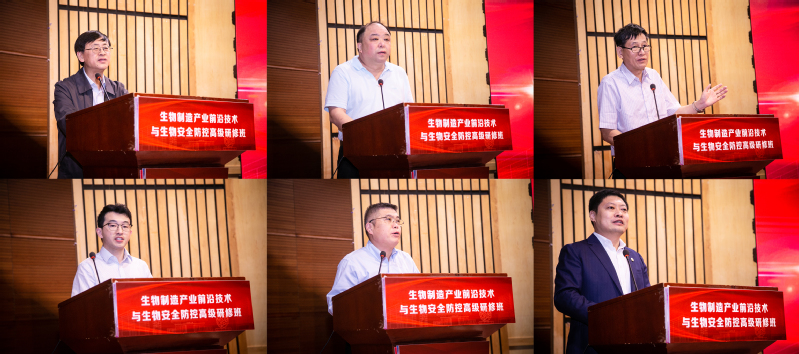 于学军在开班致辞中希望学院一要端正态度、提高认识,增强学习的自觉性,二要把握机会、学以致用,切实提高自身素质,三要振奋精神、严肃纪律,确保取得良好效果。孟琪介绍了专业技术人才知识更新工程的背景、本期高研班研修目的和作用、轻工业当前的基本情况以及对学员提出了三点要求:要把握学习机会、要带着问题学习、要遵守学习纪律。陆安静强调了生物制造产业对于国民经济的重要性,对于相关企业的发展提出了突出“绿色主题”、强化“科技创新”、注重“学科交叉”引领“未来经济”的建议。李涛代表华东理工大学对来自全国的各位专家、企业家表示欢迎。他说,建校以来,学校以服务国家建设发展需要为己任,面向世界科技前沿、国家重大需求、国民经济主战场和人民生命健康取得了大批重大创新成果,并在技术转移与产学研合作方面形成了自身的鲜明特色。本次研修班设置生物发酵及生物安全防控方面的高级研修项目,有助于提升我国生物制造产业专业技术人才能力、培养造就高素质专业技术人才队伍、推进产业企业发展作出应有贡献。赵黎明详细介绍了此次研修班的总体研修方案。随后,由石维忱为学员作了题为“让生物发酵赋能健康中国”的报告,介绍了中国生物发酵产业的“十四五”规划。