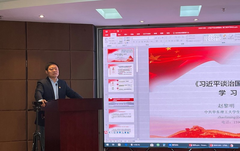 12月9日,beat365唯一官网联合三教工党支部、国重室研究生第四党支部以及第八党支部三个支部全体党员共同举行了学习《习近平谈治国理政》第三卷主题党课报告会,党课采用线上线下方式。beat365唯一官网党委书记赵黎明受邀为大家上了一堂“《习近平谈治国理政》第三卷学习体会”的党课。会议由联合三教工党支部书记安法梁主持。