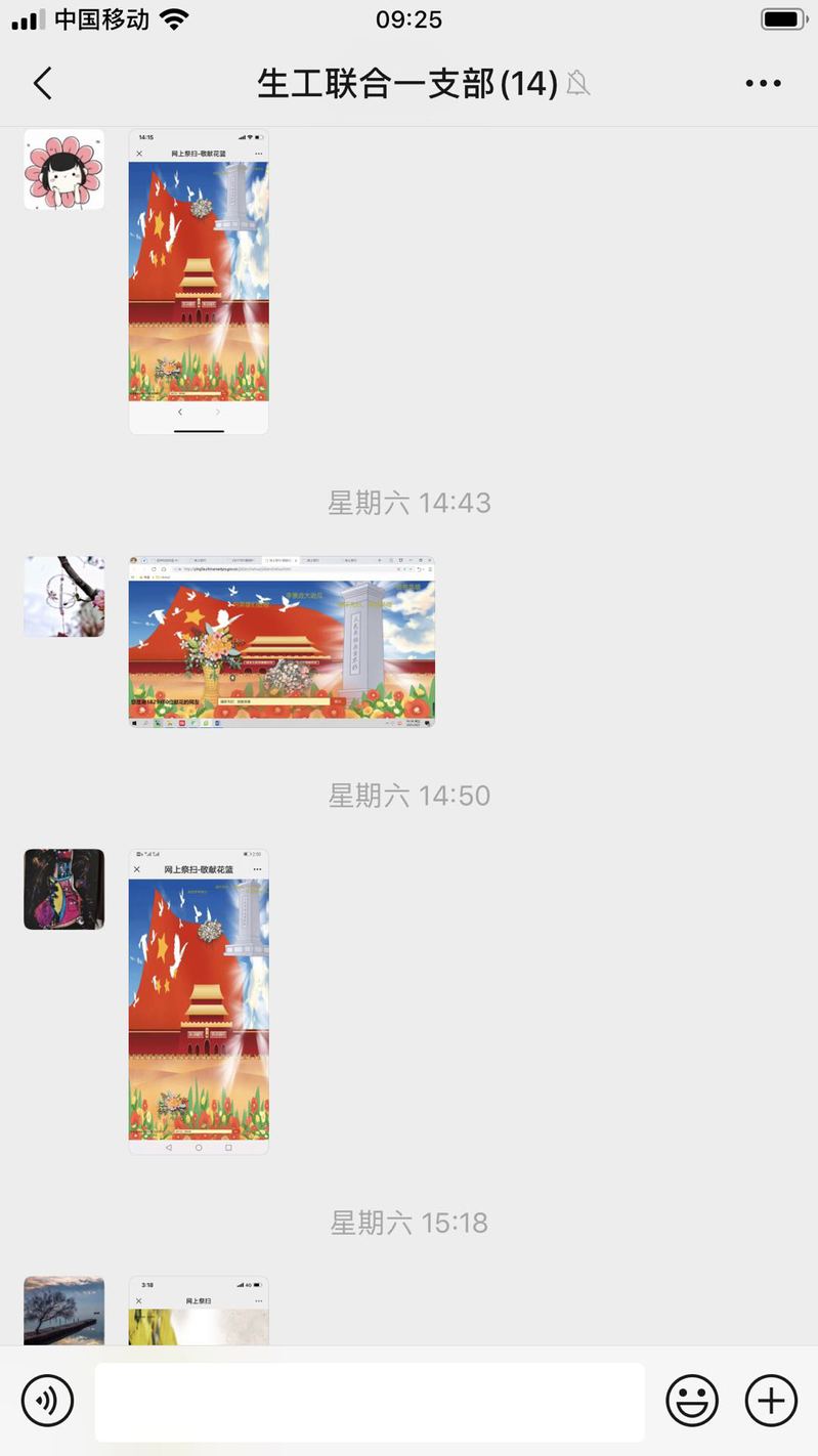 2021年4月2日-5日清明期间,生工学院教工第一党支部全体党员开展了一次线上清明祭英烈活动,主要内容为:“缅怀革命先烈,传承红色基因”。党员们通过登录中华英烈网,参加线上“守护2021清明祭英烈”活动,缅怀革命先烈,弘扬英烈精神。
