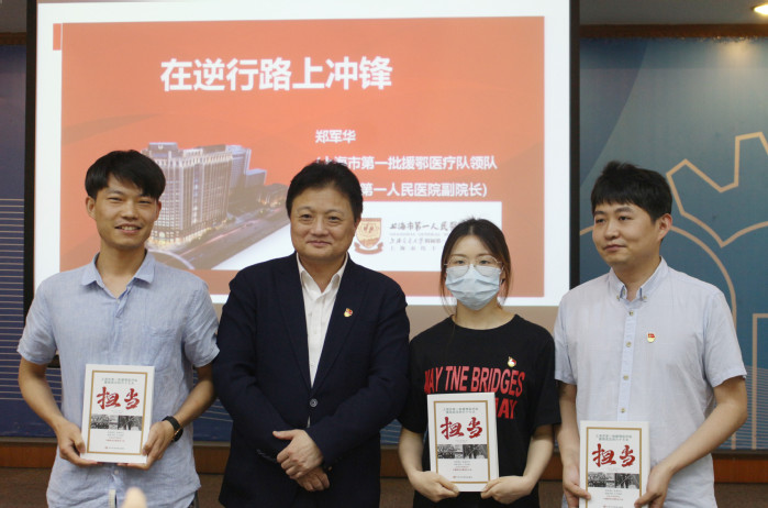 2021512日下午,上海市第一批援鄂医疗队领队兼支部书记、上海市第一人民医院副院长郑军华教授莅临beat365,在逸夫楼演讲厅给生工学院师生上了一堂主题为“在逆行路上冲锋——一线党组织政治引领凝心聚力,确保零感染完成使命”的生动党课。生工学院党委委员和29位教工及研究生党支部书记以及部分研究生代表参加了党课,党课由生工学院党委书记赵黎明教授主持。