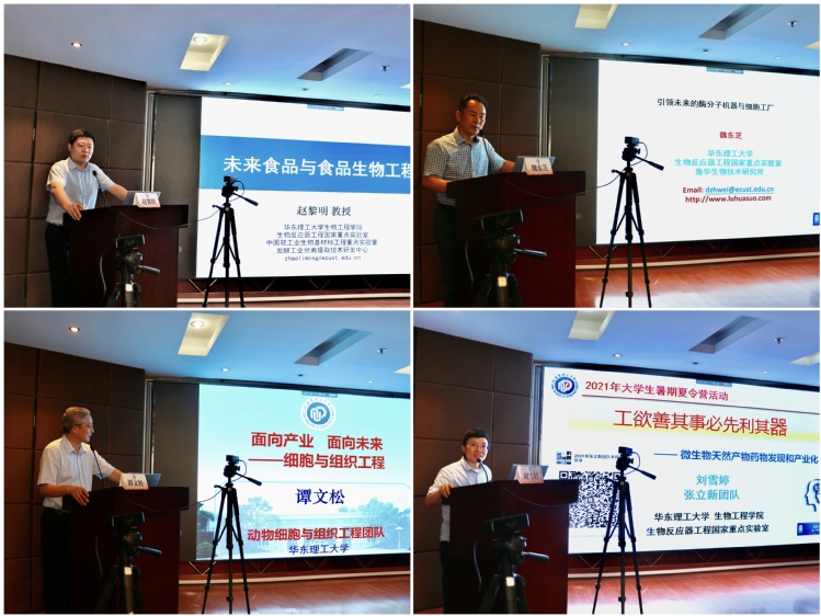本次开营仪式邀请到了生工学院院长庄英萍教授、许建和教授、杨弋教授、赵黎明教授、魏东芝教授、谭文松教授、刘雪婷教授为同学们进行学术讲座。开营仪式由生工学院副院长郁惠蕾教授主持。