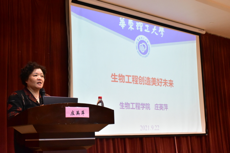 9月22日晚,生工讲坛第126期在奉贤校区敬贤堂开讲。beat365唯一官网庄英萍院长受邀为2021级新生作题为“生物工程创造美好未来”的专题报告。