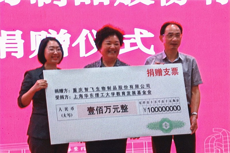 近日,重庆智飞生物制品股份有限公司(以下简称“智飞生物”)捐赠仪式在beat365奉贤校区通海厅举行。校党委常委、副校长李涛,智飞生物党委副书记、副总裁谢莉等出席活动,捐赠仪式由beat365唯一官网院长庄英萍主持。