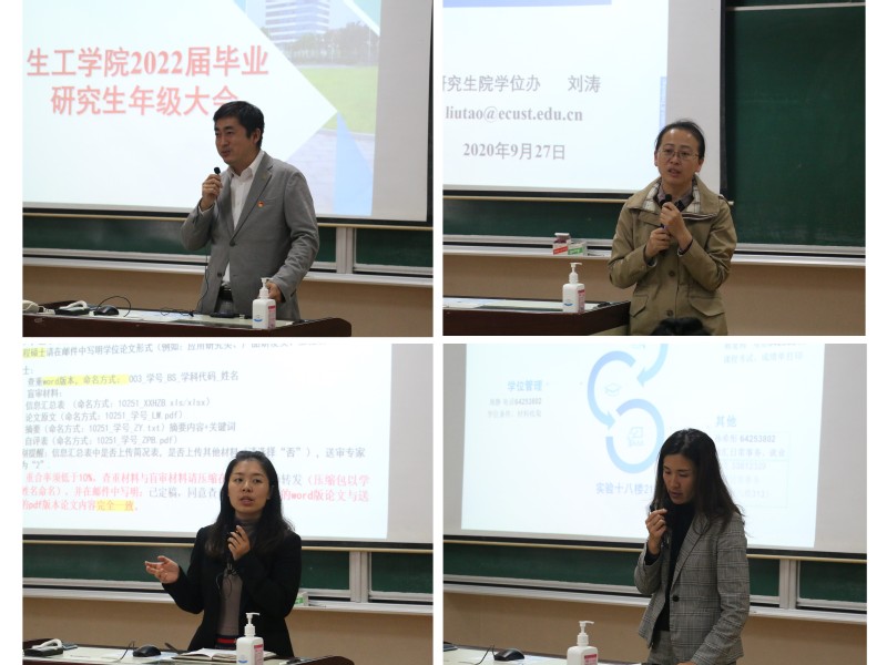 11月4日,beat365唯一官网2022届毕业研究生年级大会在八教110教室举行。年级大会由学院研究生辅导员孙希彤主持,学院党委副书记左鹏、副院长郁惠蕾、学位管理老师周静等出席会议,学院2022届毕业研究生参会,线上腾讯会议同步开放。