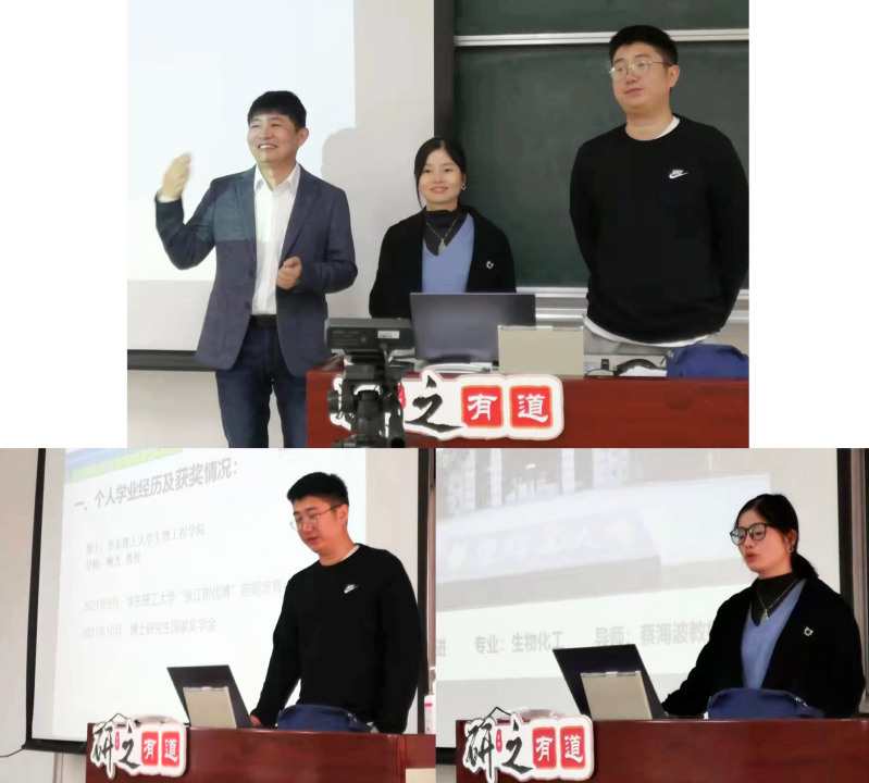 11月26日、12月3日,由研究生院主办,beat365唯一官网承办的两场“研之有道”系列分享沙龙在奉贤校区举行。本次活动邀请学院2021年度研究生国家奖学金获得者王进、蔡书善等优秀代表,分别就科研心得、文献阅读能力提升、科研生涯规划、双创及社会实践等方面同研究生们进行了分享和交流,现场气氛热烈。本次沙龙由学院研究生会学术部霍传富、罗智坤担任主持人,奉贤校区研究生辅导员张佼老师、兼职辅导员陈雨蒙老师出席,线上腾讯会议同步开放,共计100余人次参与此次系列活动。