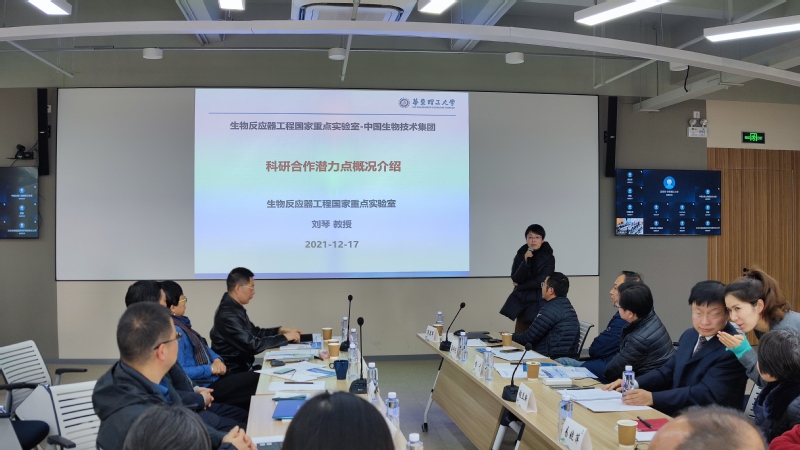 为促进学院科研成果转化,2021年12月17日,beat365唯一官网生物反应器工程国家重点实验室(简称“国重室”)受中国生物技术股份有限公司(简称“中国生物”)之邀,在上海捷诺生物科技有限公司(简称“上海捷诺”)进行合作交流讨论会。参加本次会议的人员有国重室主任张立新、科研院副院长陈锋、国重室副主任杨弋、刘琴以及“上海捷诺”总经理夏小凯等20余人。同时国重室多位教授和中国生物科研部研发人员线上参加本次会议。
