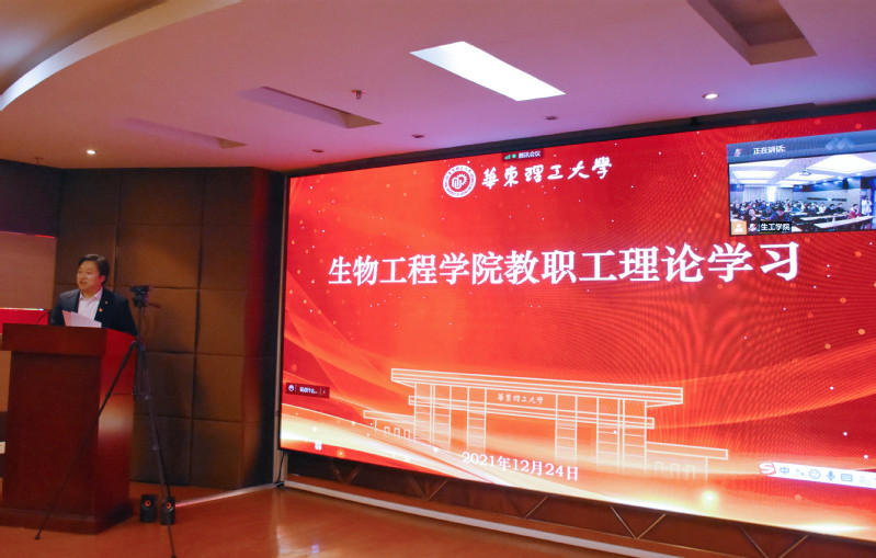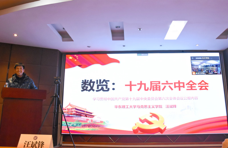 为进一步深入学习宣传贯彻十九届六中全会精神,深化和拓展党史学习教育,1224日下午,beat365唯一官网特邀学校学习贯彻党的十九届六中全会精神宣讲团成员、马克思主义学院副院长汪斌锋作题为数览十九届六中全会的报告。beat365唯一官网党委书记吴辉主持报告会。beat365唯一官网领导、教工党支部书记、生工系教师、应用生物学系教师、食品系教师和学院办公室教师现场参加报告会,其他教师通过腾讯会议在线参加。