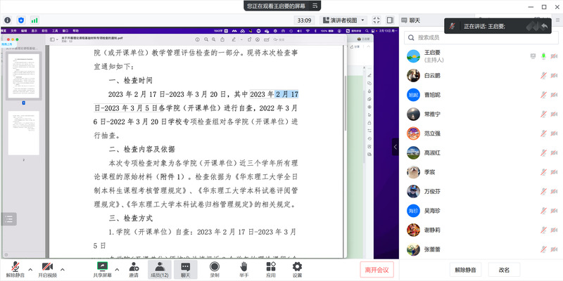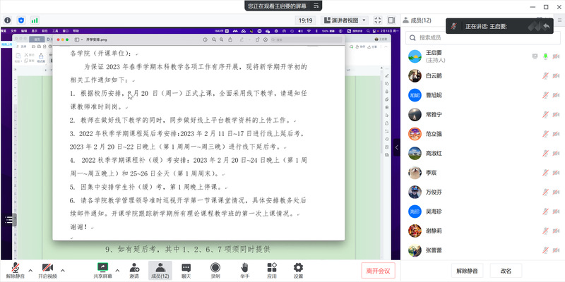 根据学校审核评估基础材料检查和开学前准备工作线上会议精神,为做好本科教学评估和开学前的各项准备,beat365唯一官网于2023年2月13日组织召开线上本科评估工作会议,学院各系主任、副主任、本科教学工作教师骨干、教务员等参加了此次会议。会议由教学副院长王启要主持。