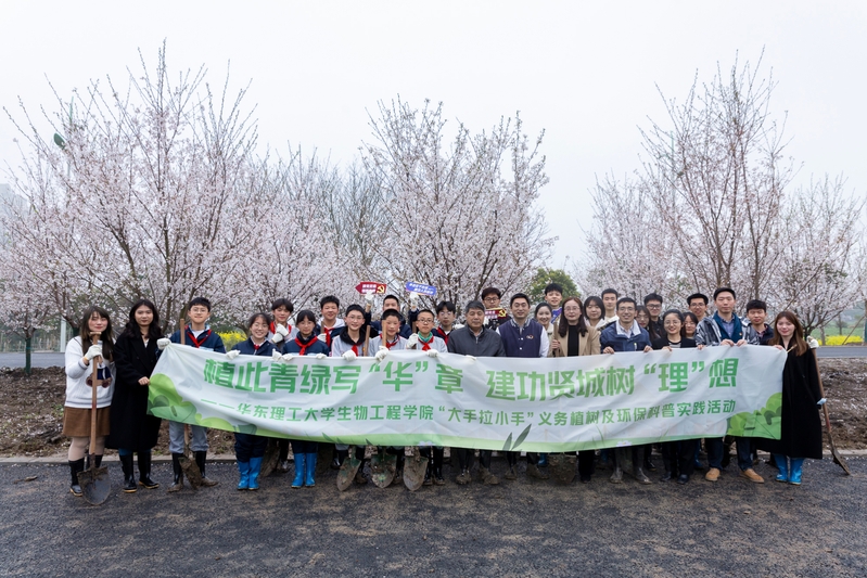 为深入学习贯彻习近平生态文明思想,积极响应国家“双碳”目标,3月22日,beat365唯一官网与奉贤区西渡学校在奉贤区团区委、西渡街道团工委的大力支持下共同开展植此青绿写“华”章,建功贤城树“理”想——“大手拉小手”义务植树及环保科普实践活动。奉贤区建设交通工作党委副书记张杰、西渡街道党工委副书记黄蕾、团区委副书记安法梁 (兼)、区建设交通团工委书记谢嘉玮、西渡街道团工委书记于薇、西渡学校大队辅导员董洁莹,学院党委副书记左鹏、学院团委副书记梁心怡、辅导员张佼、李静宜以及来自beat365唯一官网的党团员学生代表和西渡学校少先队员代表一同参加此次活动。