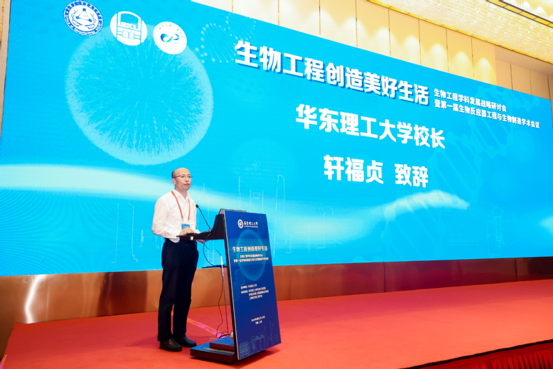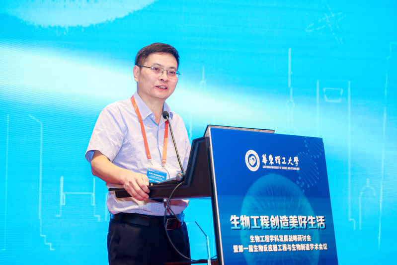 轩福贞代表主办单位致辞。他表示,在合成生物学和生物医药新产业快速发展的今天,专家学者们齐聚上海,共同探讨生物工程学科的发展战略和生物反应器工程与生物制造的重要前沿科学问题,交流前沿科学理念和创新思想,推动生物工程学科的可持续发展未来趋势,为交流与共享学术成果搭建了桥梁。华东理工大学在生物工程领域办学历史悠久,1955 年在国内最早成立抗生素制造工学专业,1991 年获批全国首个生物化工博士点,2015 年获批全国首个“生物工程”博士学位授权一级学科。目前,学校在生物制造领域汇聚了众多国内外专家学者,与国内80 多所生物制药、食品加工、生物材料和生物农药领军企业开展了长期的科研合作,一批行业共性、关键技术的大规模产业化推广应用产生了重大的经济和社会效益。希望以本次会议为契机,搭建起更加广泛的学科交融和多维度切入的产学研融汇创新平台,与各兄弟院校、同行专家一道,共同为中国生物产业的发展做出新的更大的贡献!