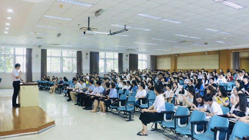 左鹏为研究生新生详细介绍了学院研究生培养情况,重点强调同学们要恪守学术道德与学术规范,认真学习实验室安全操作规范,保障个人安全。左老师寄语新生早日做好规划,在未来的研究生阶段学有所成。