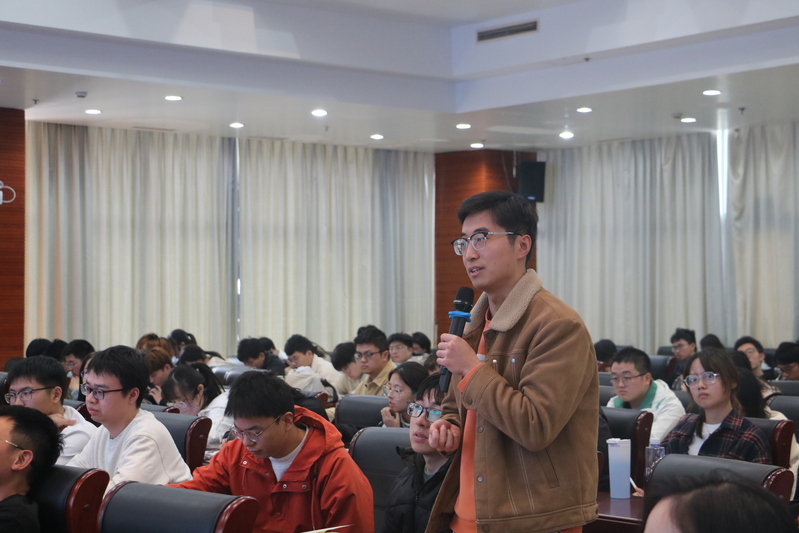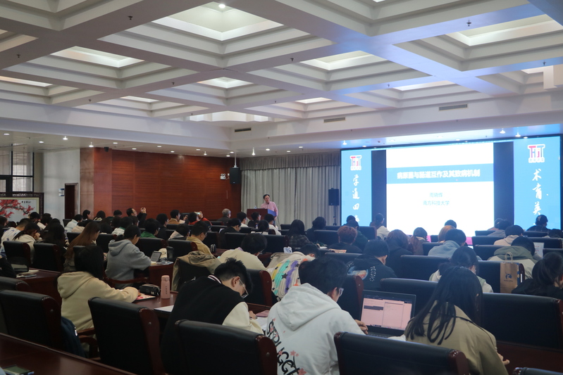 在互动环节,周晓辉一一回答了学生关于“肠道正常菌群与病原菌的互作”、“硝酸盐诱导分泌系统的下调是否可以缓解肠炎”、“一氧化氮合酶是否可作为药物治疗靶点”等方面的提问。他鼓励同学们努力学习微生物学、分子生物学等多学科的知识,以更好地应对生物医药领域的技术挑战,并欢迎对病原微生物学及抗生素耐药机制感兴趣的学生来南方科技大学进行深造和交流。