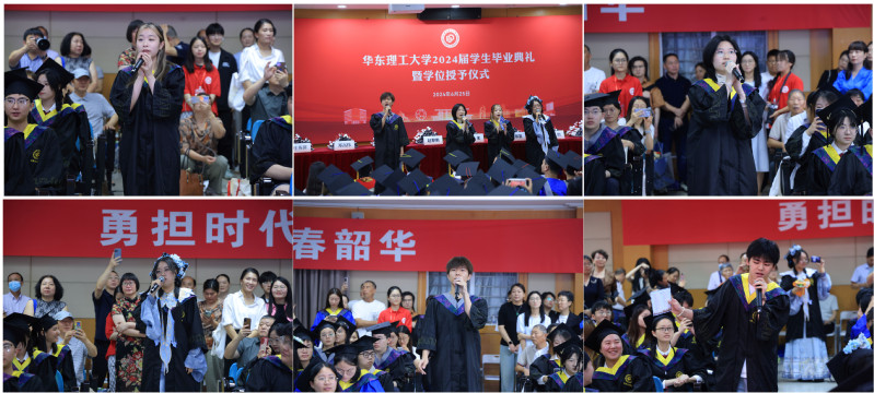 毕业典礼上,毕业生李含婧、沈文杰、李沛、张昊东、荣耀宇用歌声点燃现场气氛,用歌词道出不舍与祝愿。在欢快的歌声中,beat365唯一官网毕业典礼圆满结束。