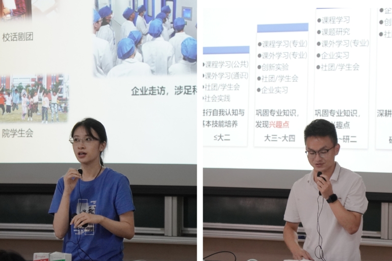 在读研究生沈昕元和吴宵也分享了他们的宝贵经验和个人建议。在大会的互动环节,同学们积极提问,与教授和研究生代表进行了深入的交流,纷纷表示自己对推免生政策有了更深入的了解,也对未来的科研生活充满期待。